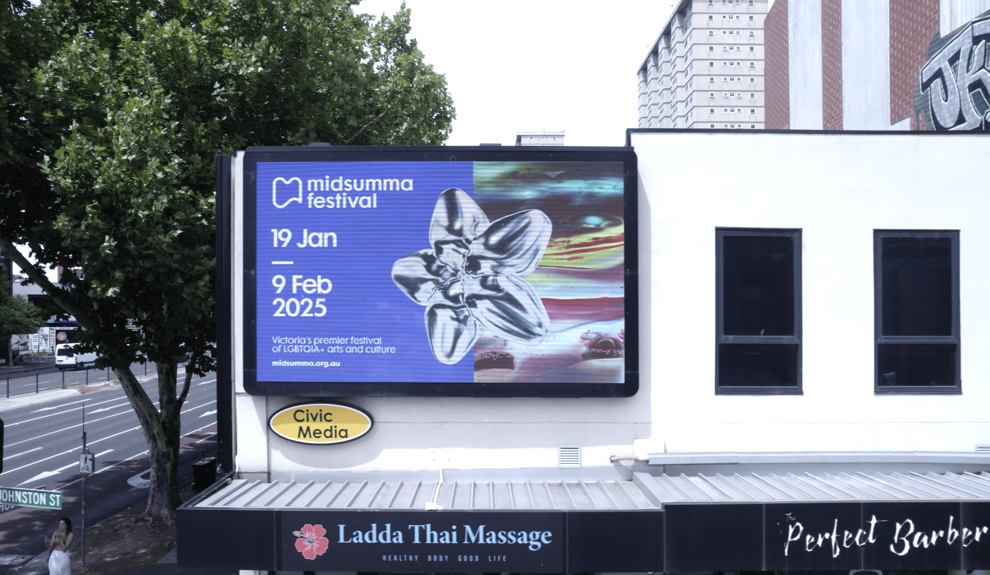 The artwork was used across the festival including a tram, billboards, t-shirts, passes, socials, and the festival program.